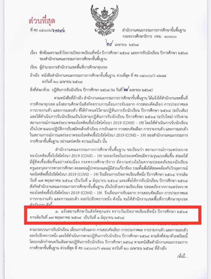 เปิดเรียนภาคเรียนที่ 1ปีการศึกษา 2564