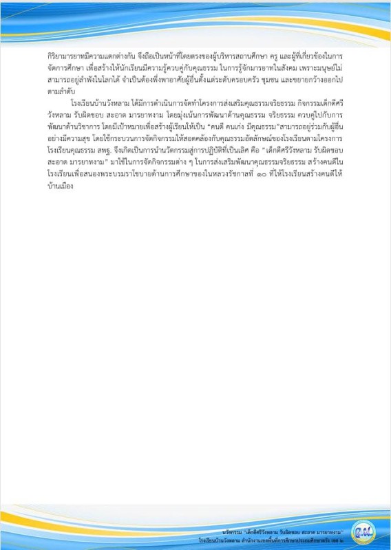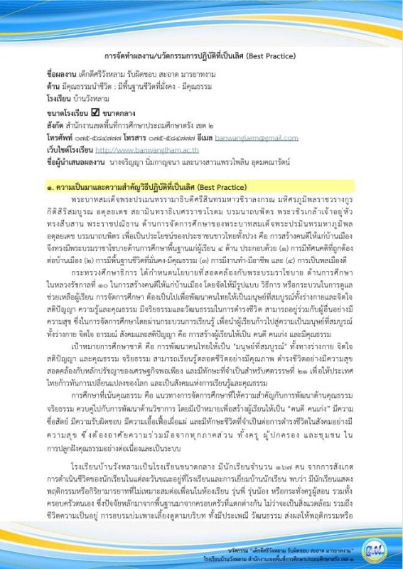 เผยแพร่ รายงานผลวิธีปฏิบัติที่เป็นเลิศ (Best Practice) ในการน้อมนำพระบรมราโชบายด้านการศึกษาในหลวงรัชกาลที่ 10 สู่การปฏิบัติ ประเภทสถานศึกษาขนากลาง ด้านมีพื้นฐานชีวิตที่มั่งคง-มีคุณธรรม ?“เด็กดีศรีวังหลาม “รับผิดชอบ สะอาด มารยาทงาม”✨